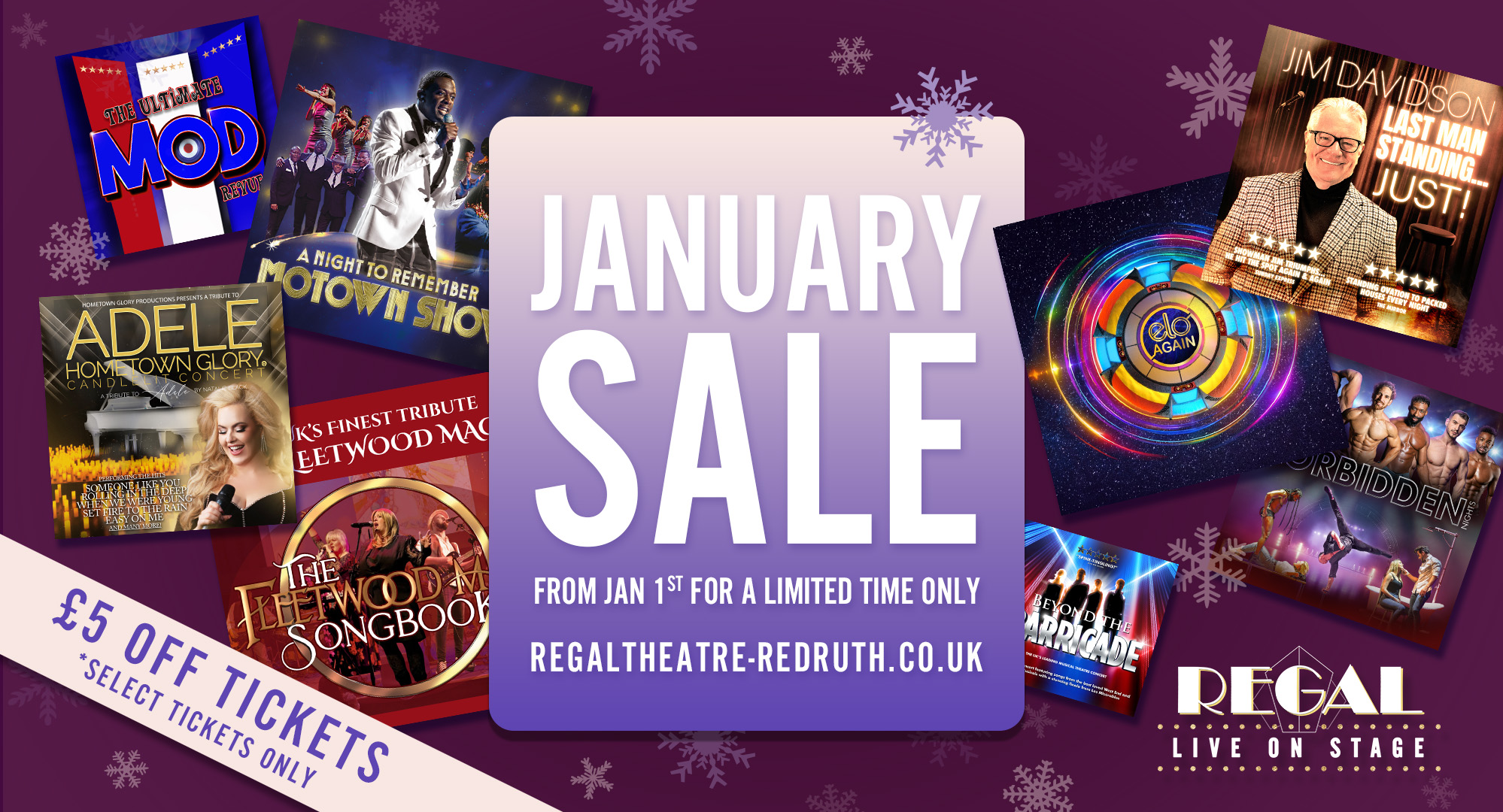 This January we're offering £5 off when you buy tickets for selected shows coming soon to the stage at Regal!